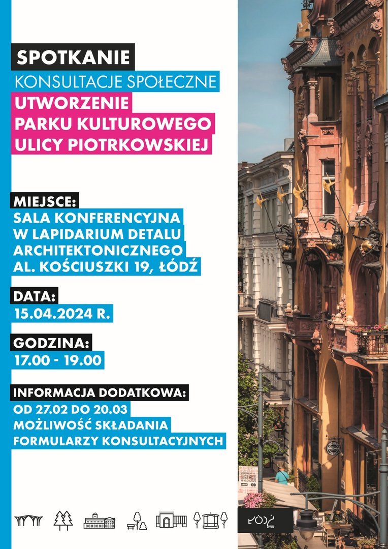 26 lutego rusza cykl spotkań, skierowanych do mieszkańców, społeczników i przedsiębiorców, którego celem będzie wypracowanie rozwiązań estetycznych, technicznych i użytkowych dla ulicy Piotrkowskiej, m.in. zasad wywieszania szyldów i reklam, malowania budynków, wyglądu i lokalizacji ogródków gastronomicznych, które zostaną włączone w dokument stanowiący Regulamin Parku Kulturowego. Ze względu na dynamiczny proces rewitalizacji centrum miasta konieczne będzie również ustalenie optymalnego obszaru, który zostanie objęty ochroną przez Park Kulturowy. Może on zabezpieczyć nie tylko ulicę Piotrkowską, ale również plac Wolności, Stary Rynek i park Staromiejski. Organizatorzy liczą na opinie łodzian w tej sprawie.
