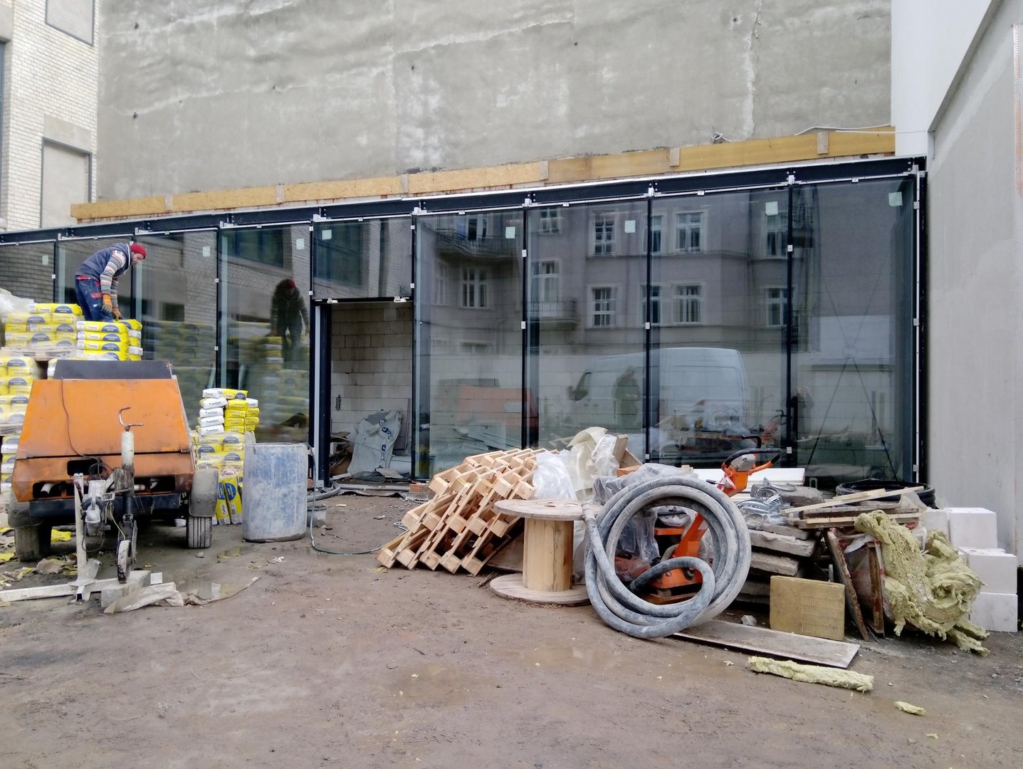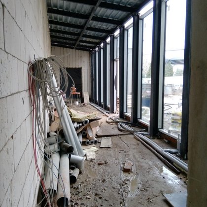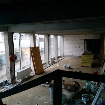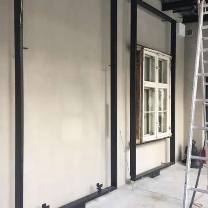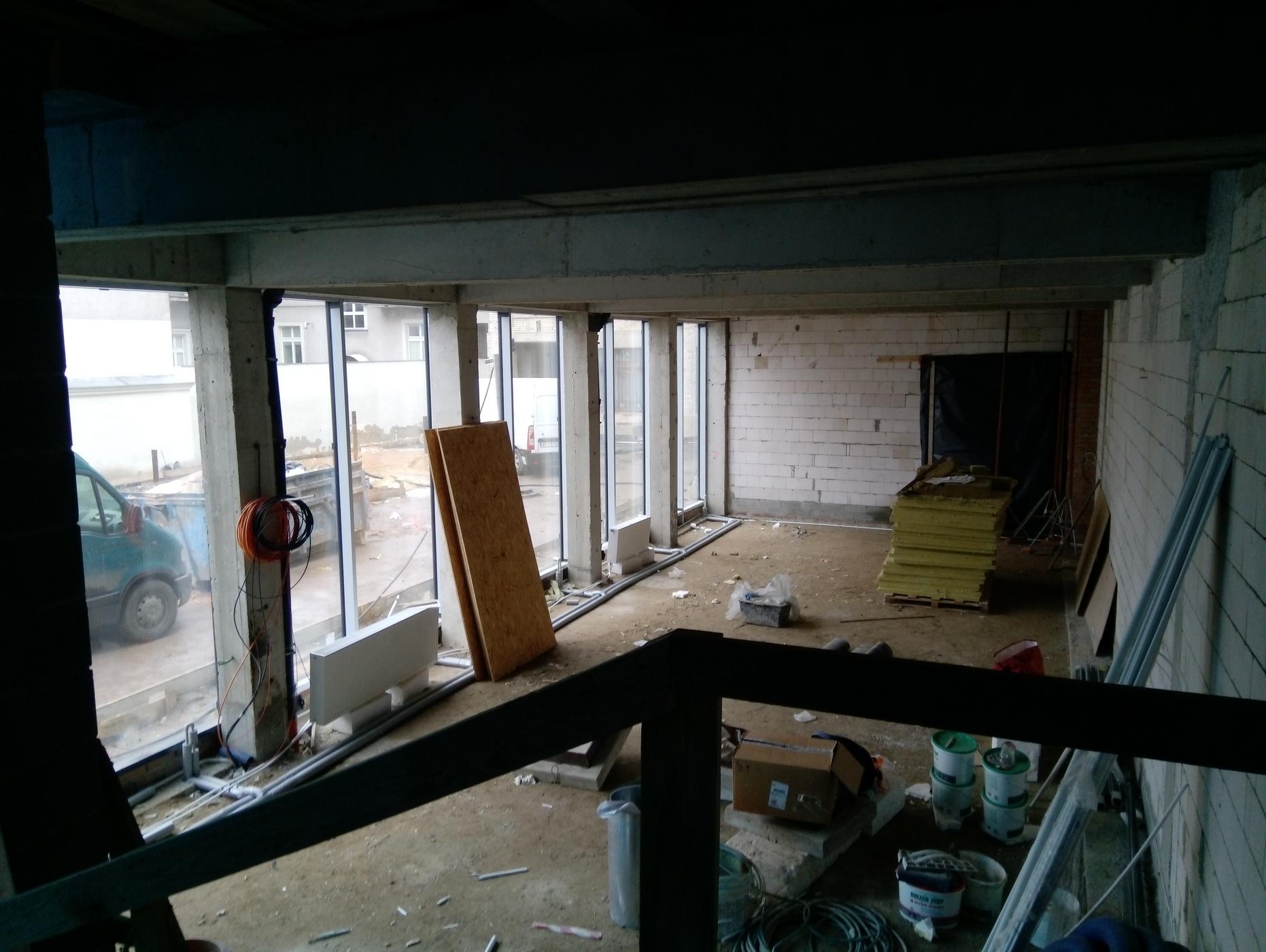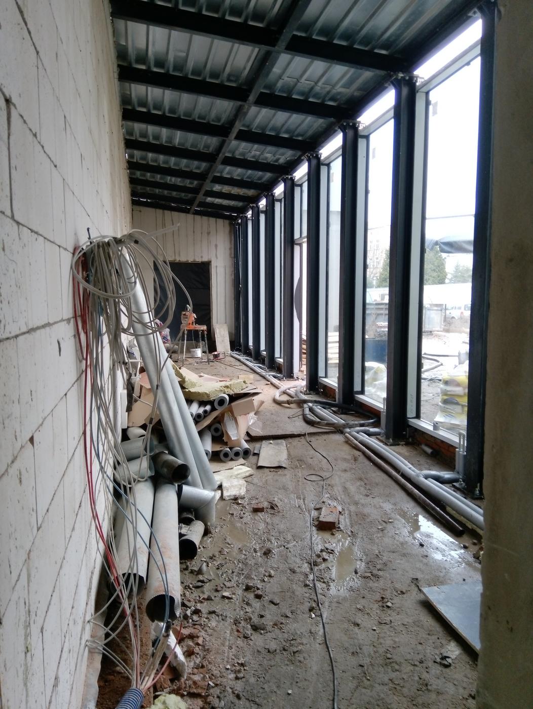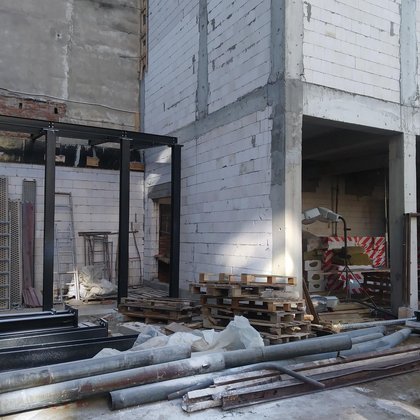 Łącznik to przestrzeń, która komunikuje budynek główny z budynkiem magazynu.