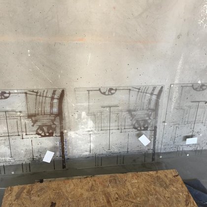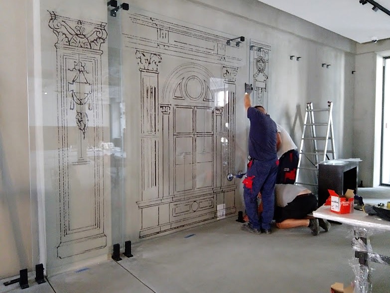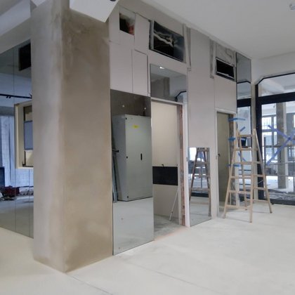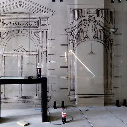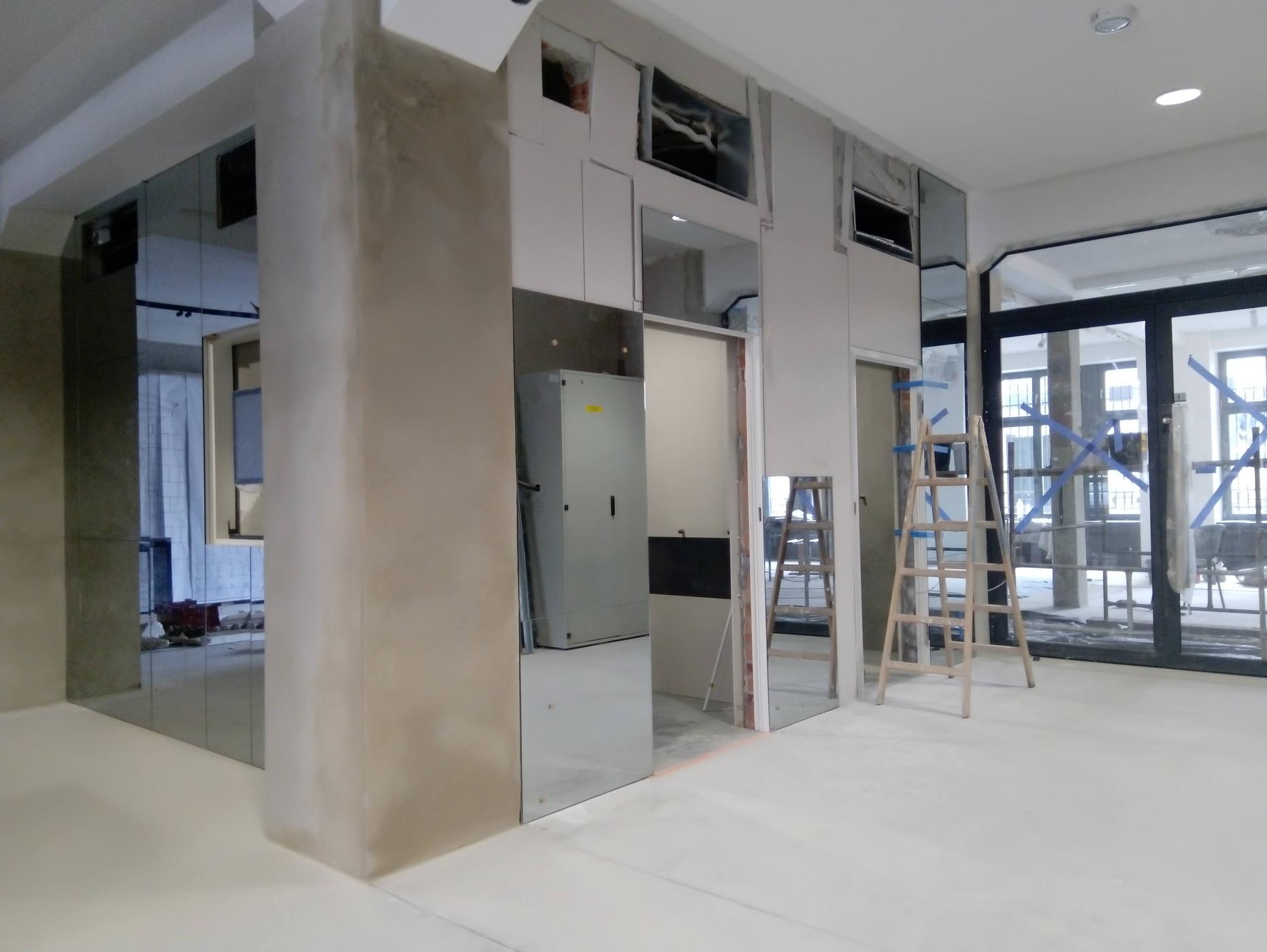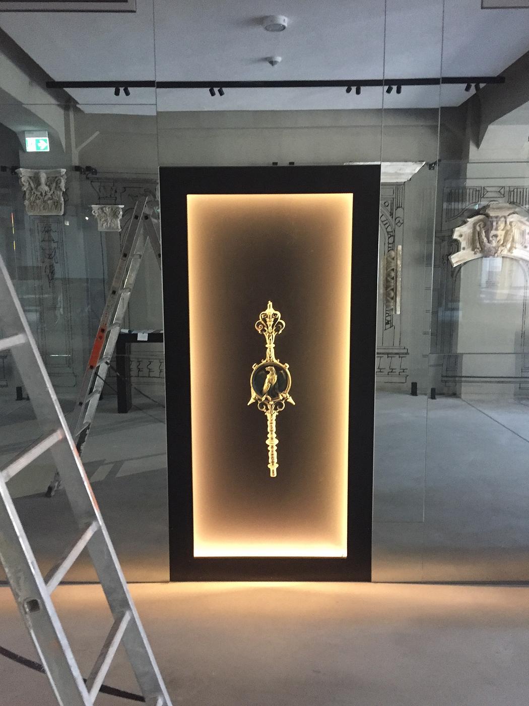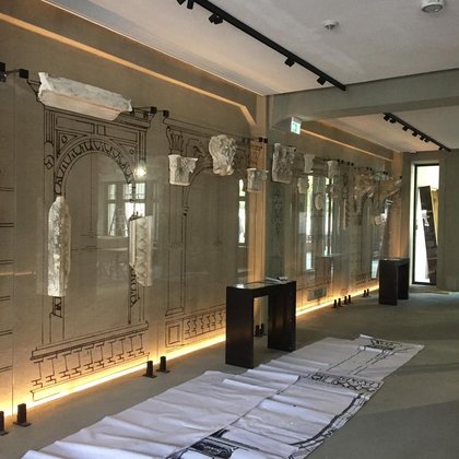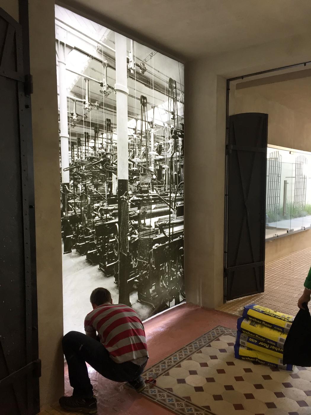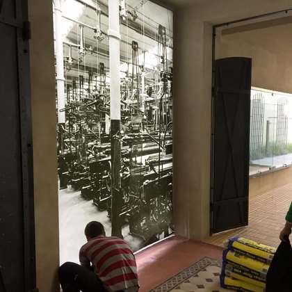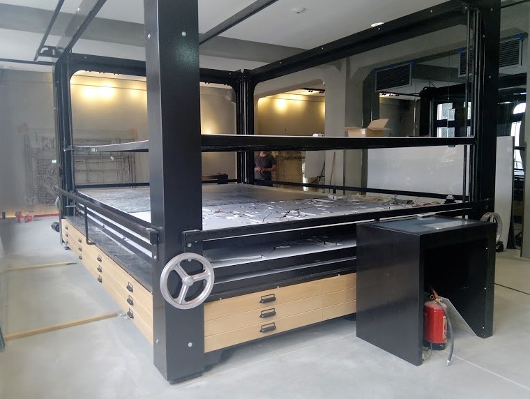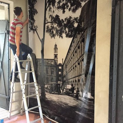 Dodatkowo za lustrzaną ścianą wyświetlane są zdjęcia porównujące historyczny i współczesny wygląd ulic i placów.