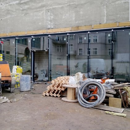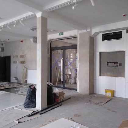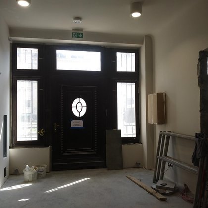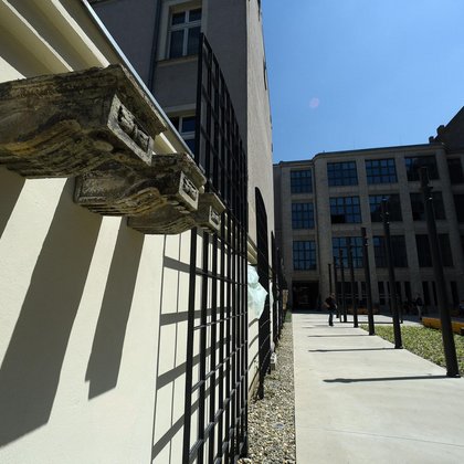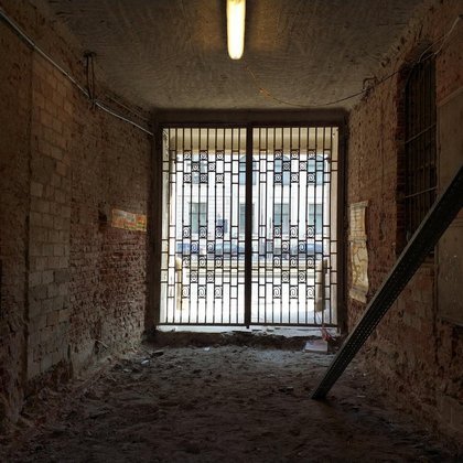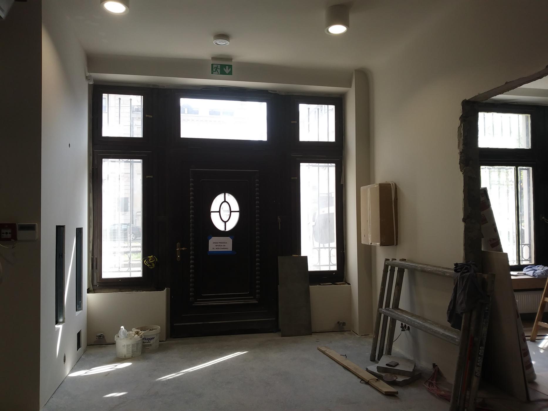 Dawny prześwit bramowy został zamknięty i stanowi strefę wejścia do budynku głównego. Jest to miejsce, w którym obok eksponatów, takich jak stalowe drzwi fabryczne, czy fragment historycznej posadzki z kamienicy, przewidziana została przestrzeń do prezentowania ogłoszeń Miejskiej Pracowni Urbanistycznej (np. dotyczących wyłożenia planów miejscowych, spotkań konsultacyjnych).