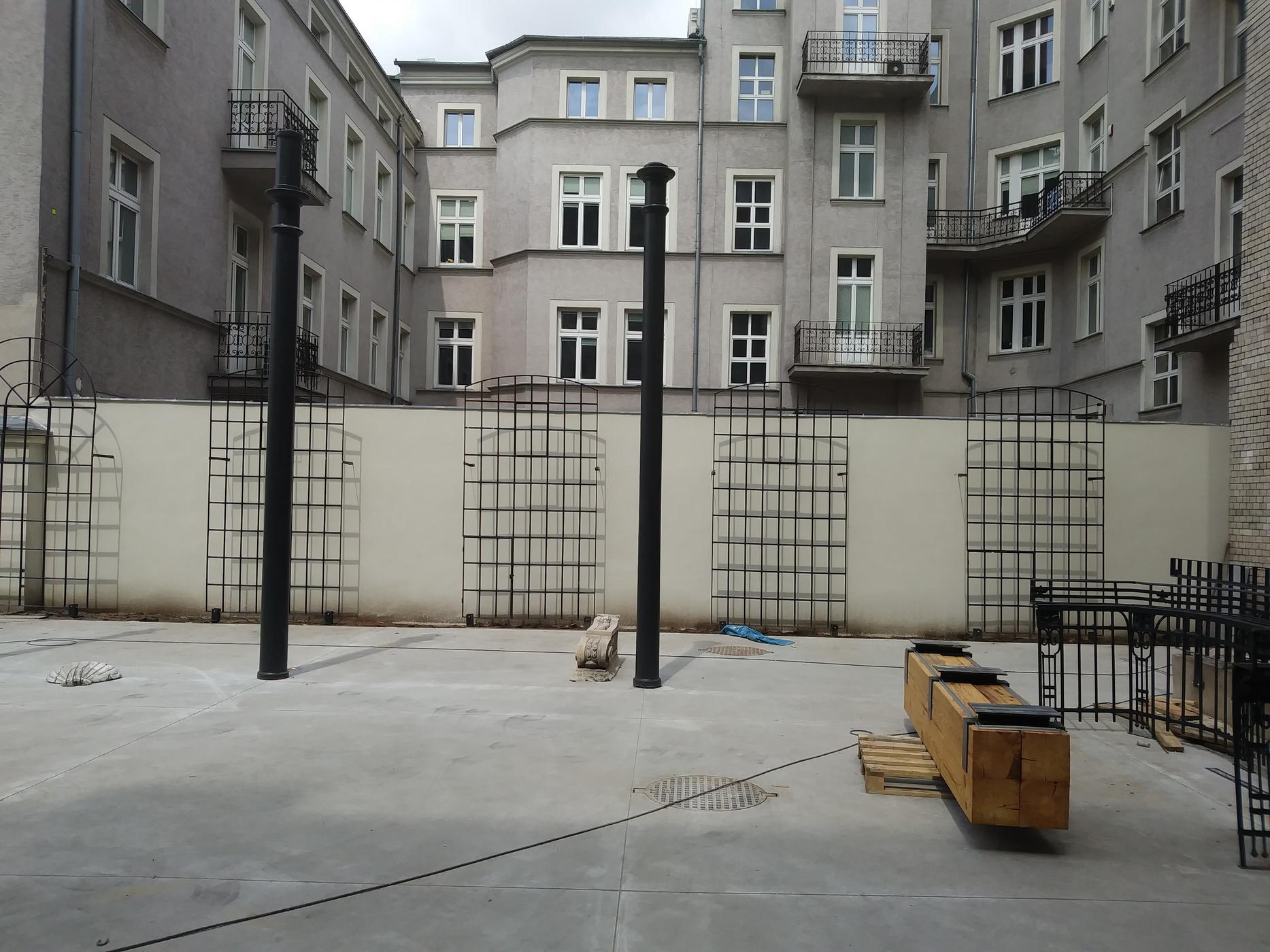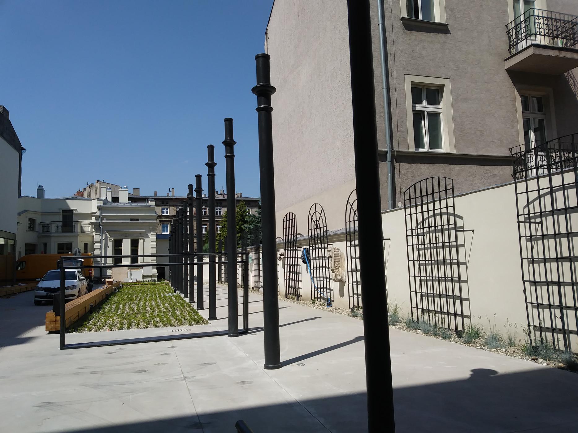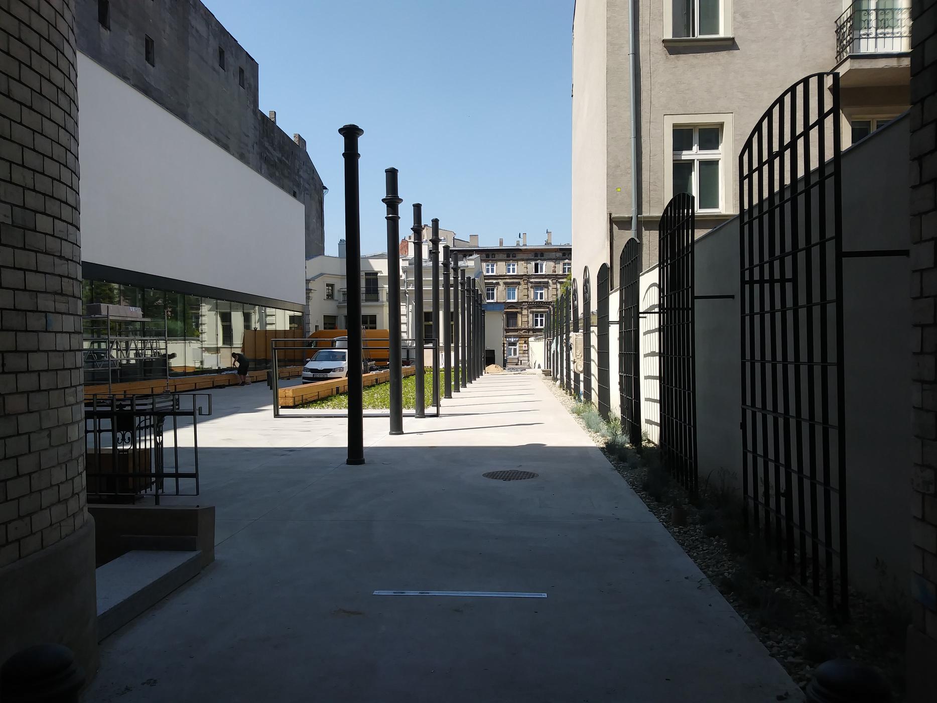 Podwórze łączy budynek domu towarowego z willą, w której mieszkał właściciel nieruchomości. Ze względu na fakt, iż dostęp do nieruchomości zapewniony jest zarówno od strony al. Kościuszki, jak i od strony ul. Wólczańskiej, podwórze przekształcone zostało w wewnątrzkwartałowy PASAŻ.
