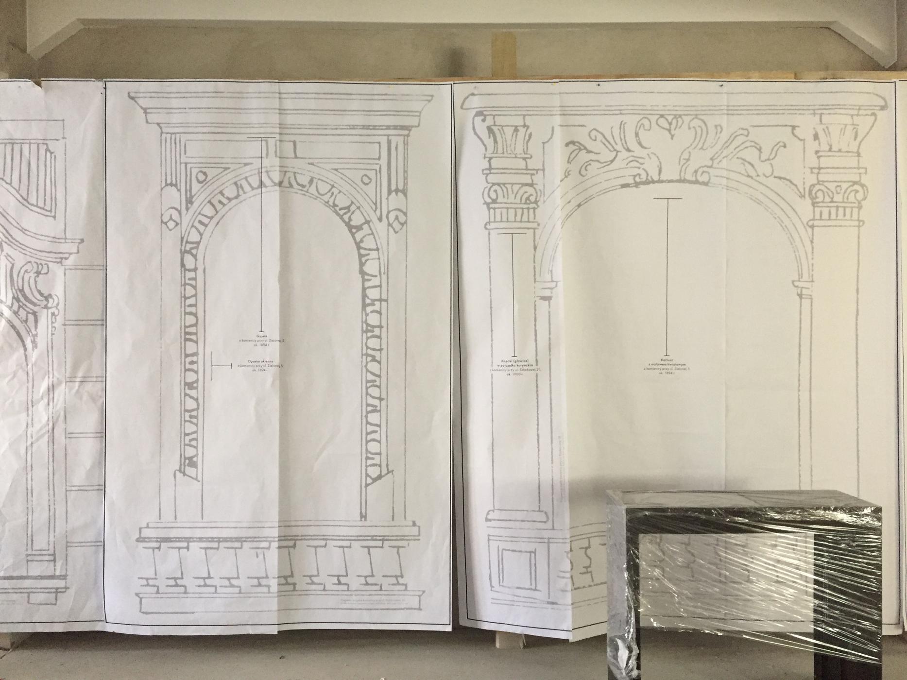 W tej strefie, prowadzącej do Sali Wielofunkcyjnej, prezentowane są elementy wystroju wnętrz takie jak: fragmenty balustrad schodowych, sztukaterie i stolarka drzwiowa. Uzupełnieniem tej części ekspozycji jest prezentacja zdjęć łódzkich klatek schodowych i prześwitów bramowych, która wyświetlana jest na ekranie ukrytym za lustrzaną ścianą.