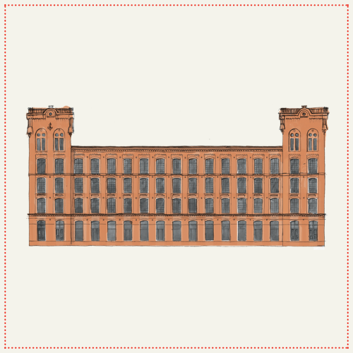 Jeden z dwóch – obok fabryki Ludwika Geyera - zachowanych obecnie przy ul. Piotrkowskiej budynków przemysłowych, odznaczający się masywną bryłą z czerwonej cegły, o formach włoskiego trecenta i quattrocenta, co odróżnia go zdecydowanie od powstałej wcześniej „Białej Fabryki” Geyera. Gmach wniesiono dla najznaczniejszego obok Izraela Poznańskiego fabrykanta żydowskiego Łodzi, Markusa Silbersteina, według projektu z 1894 r. sygnowanego przez architekta Adolfa Zeligsona, znanego głównie z wielu prac wykonywanych dla Poznańskich.