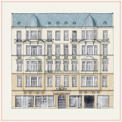 Kamienica o masywnej formie łączącej cechy neobarokowe z modernistycznymi tendencjami do uproszczeń i ograniczenia detalu. Wzniesiona została w latach 1911-1913 przez Ottona Schultza według planów Stanisława Józefa Landaua na posesji o długiej historii, na której tyłach przez kilkadziesiąt lat funkcjonował dom zajezdny z ogródkiem rozrywkowym i teatrem, o nazwie „Paradise” („Paradyż”„Paradyz” = Raj), założony w 1827 r. przez Jana Adamowskiego.