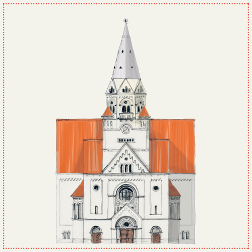 Grupa wiernych wyznania ewangelicko-augsburskiego wzniosła przy skrzyżowaniu ul. Piotrkowskiej z ul. Czerwoną trzecią, najbardziej okazałą świątynię tego wyznania w Łodzi. Pierwotny projekt, wykorzystujący formy romańskie, w 1905 r. opracował Johannes Wende z późniejszymi poprawkami wprowadzonymi przez niemieckiego architekta Franza Schwechtena.