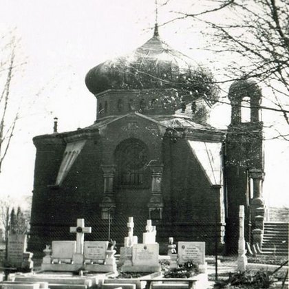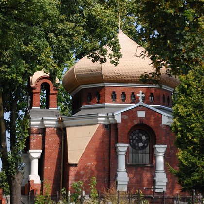 Cerkiew cmentarna wzniesiona w 1904 r. według projektu Franciszka Chełmińskiego w stylu rosyjsko-bizantyńskim.